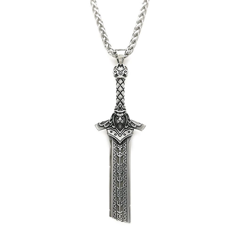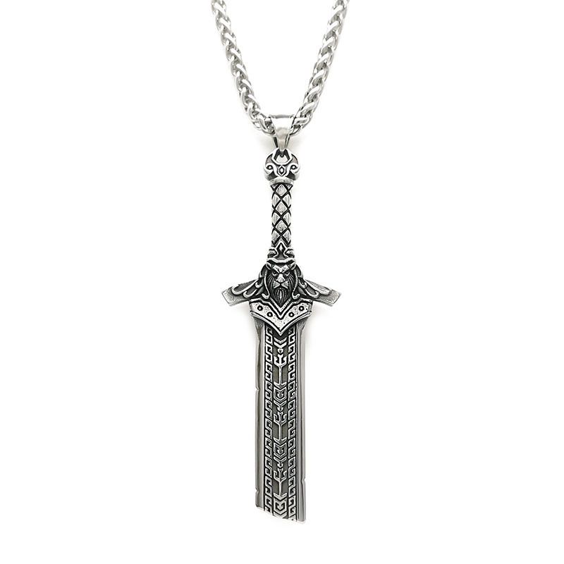 Viking Sword Pendant Men's copper-plated silver vintage broken sword necklace, trendy, versatile, punk, European and American medieval king's sword pendant.